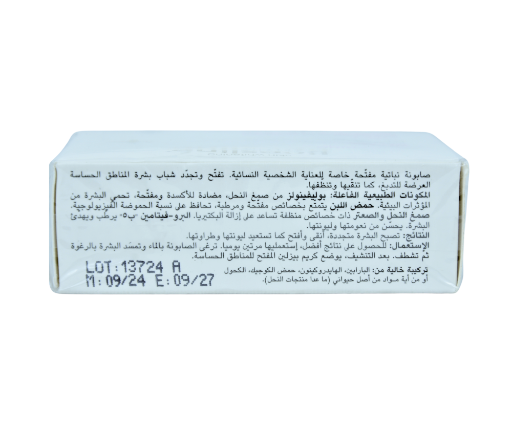 صابون بيزلين لتفتيح المناطق الحساسة مصمم خصيصًا لتفتيح وترطيب وتجديد البشرة الحساسة. غني بالبوليفينولات المستخلصة من النحل والبروبوليس واللاكتات، يحافظ على التوازن الطبيعي للبشرة (pH) ويوفر تغذية عميقة. مناسب للبشرة الداكنة في المناطق الحساسة، ويمنحها نعومة وانتعاشًا وإشراقًا طبيعيًا مع كل استخدام.