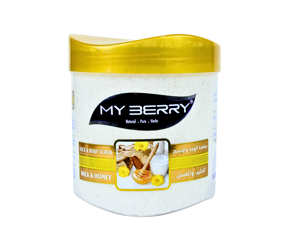 مقشر الحليب والعسل من MY BERRY يجمع بين فوائد الترطيب العميق للحليب وخصائص الشفاء والتلطيف للعسل.