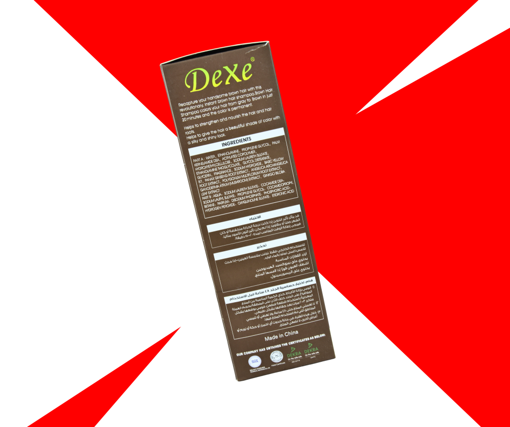 احصل على لون شعر بني جذاب بطريقة سهلة وسريعة مع شامبو Dexe. تركيبة فريدة تجمع بين الشامبو والصبغة، تمنحك شعرك اللون المطلوب في دقائق معدودة فقط، دون عناء أو فوضى.