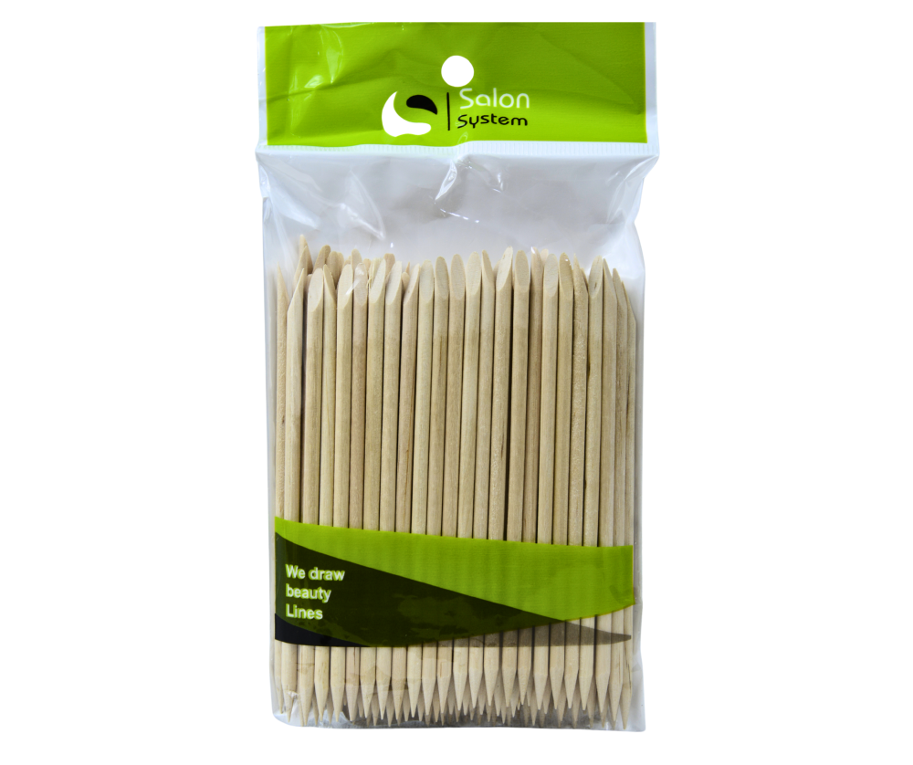 أعواد خشبية احترافية من Salon System بتصميم مزدوج الطرف لتقشير الجلد المحيط بالأظافر وتنظيف الأوساخ الدقيقة.